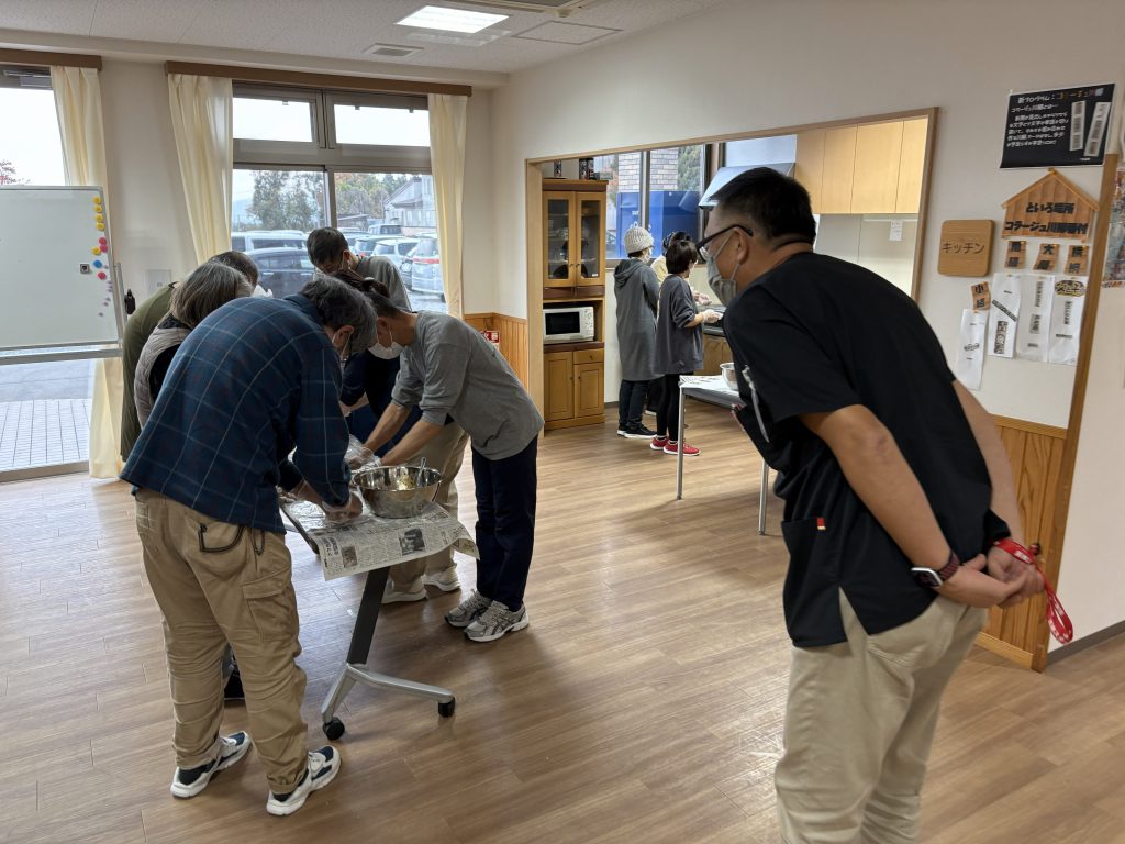 その報告会がデイケア“といろ”で午前:現地の料理作り、午後:トークショウの2本立てで開催されました。